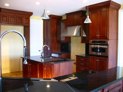 Maple with Mahogany veneer accents - Stained dark cherry.